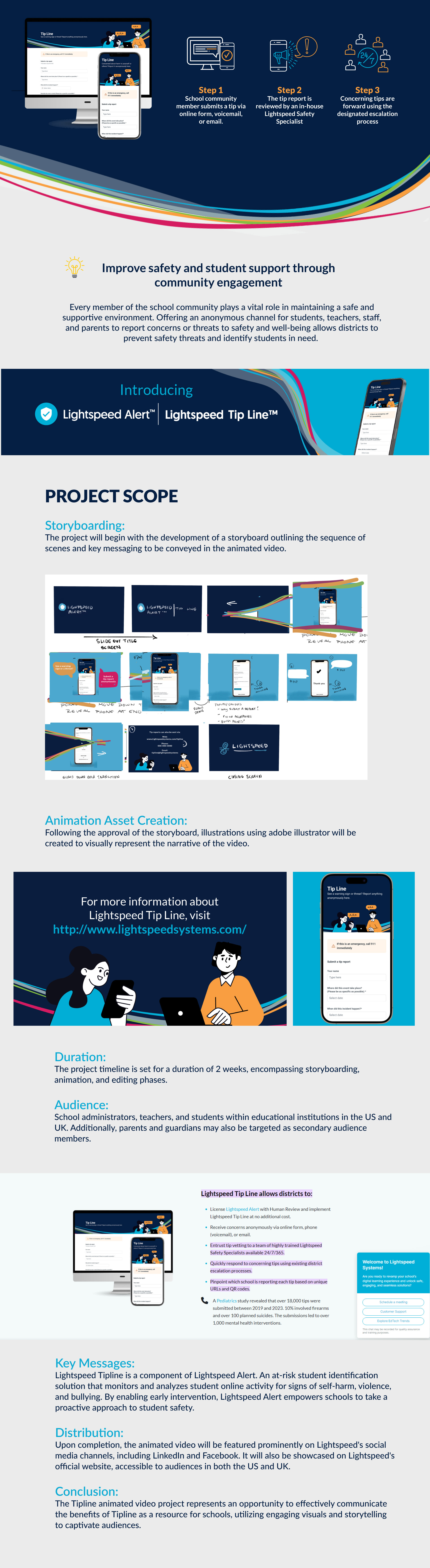 Animation process from beginning to end promoting Lightspeeds new rollout Lightschool Tipline™.
